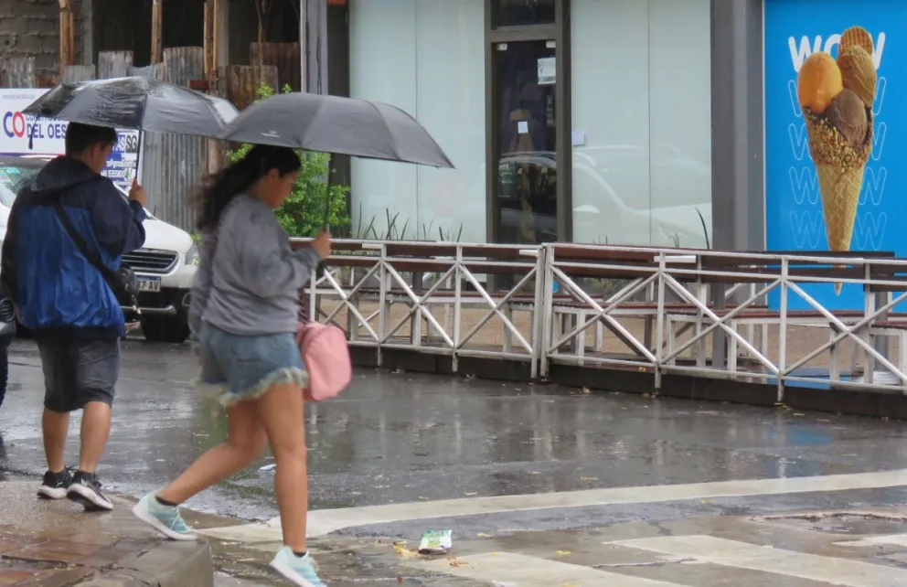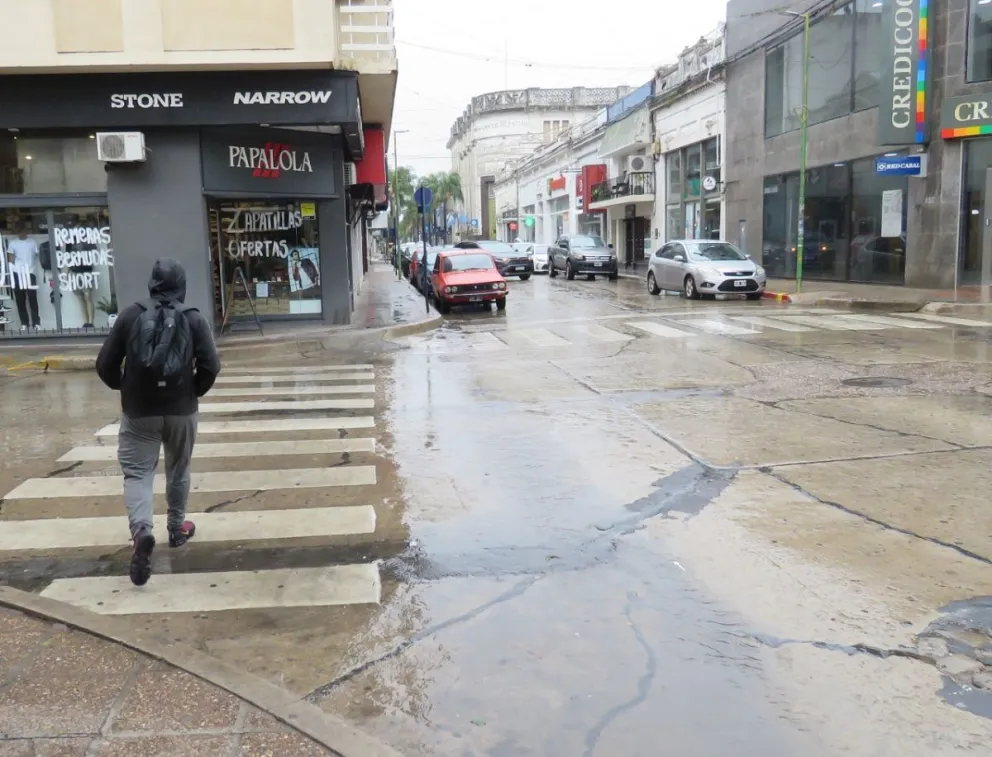La lluvia obligó a turistas a refugiarse en el microcentro y Costanera mientras esperan la octava noche del Carnaval