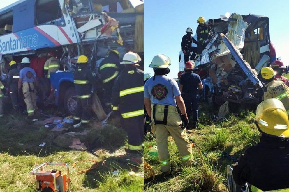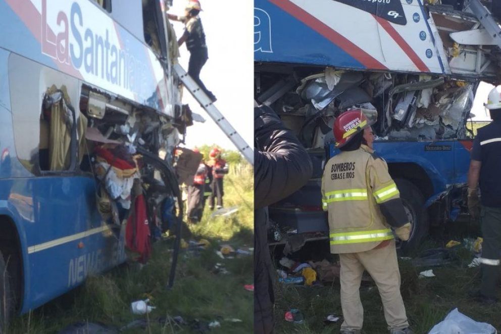 Esta mañana, cerca de las 7, se produjo un grave siniestro vial en la autopista Mesopotámica al chocar un camión y un micro de larga distancia perteneciente a la empresa paraguaya "La Santaniana".
