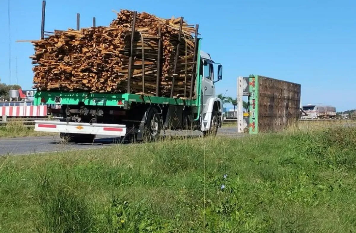 Un camión volcó su carga de maderas en la ruta 14