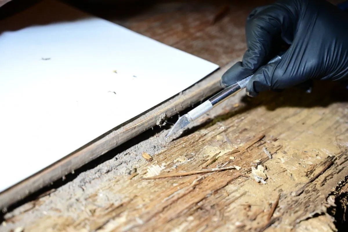 1. Inspección de todas las estructuras de madera para poder evaluar los daños, debido a que los que fueron observados no son sólo por el individuo plaga, sino de la humedad ambiente y microrganismos.