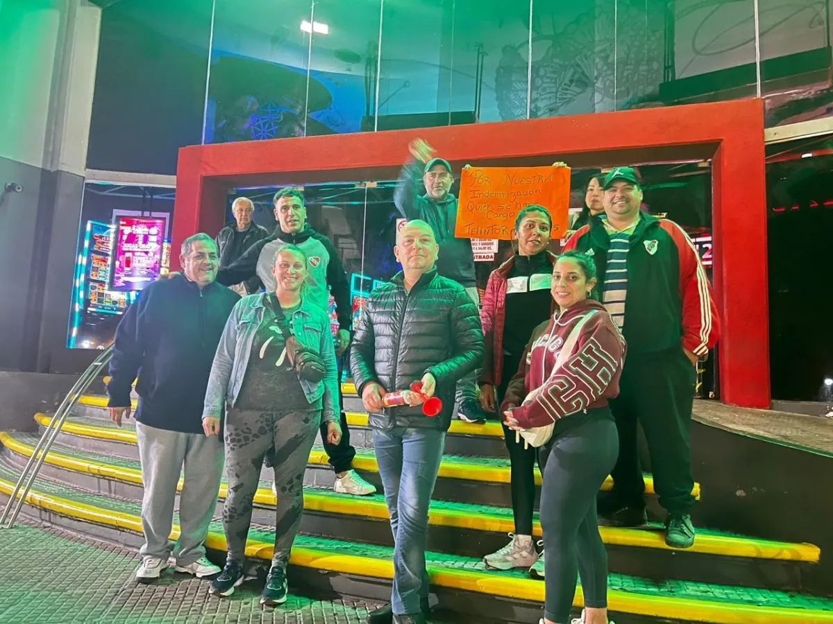 En la noche de este viernes, un grupo de despedidos se concentró en la puerta del Casino con un cartel para reclamar el pago y denunciaron la incertidumbre, precariedad y desamparo que sienten.