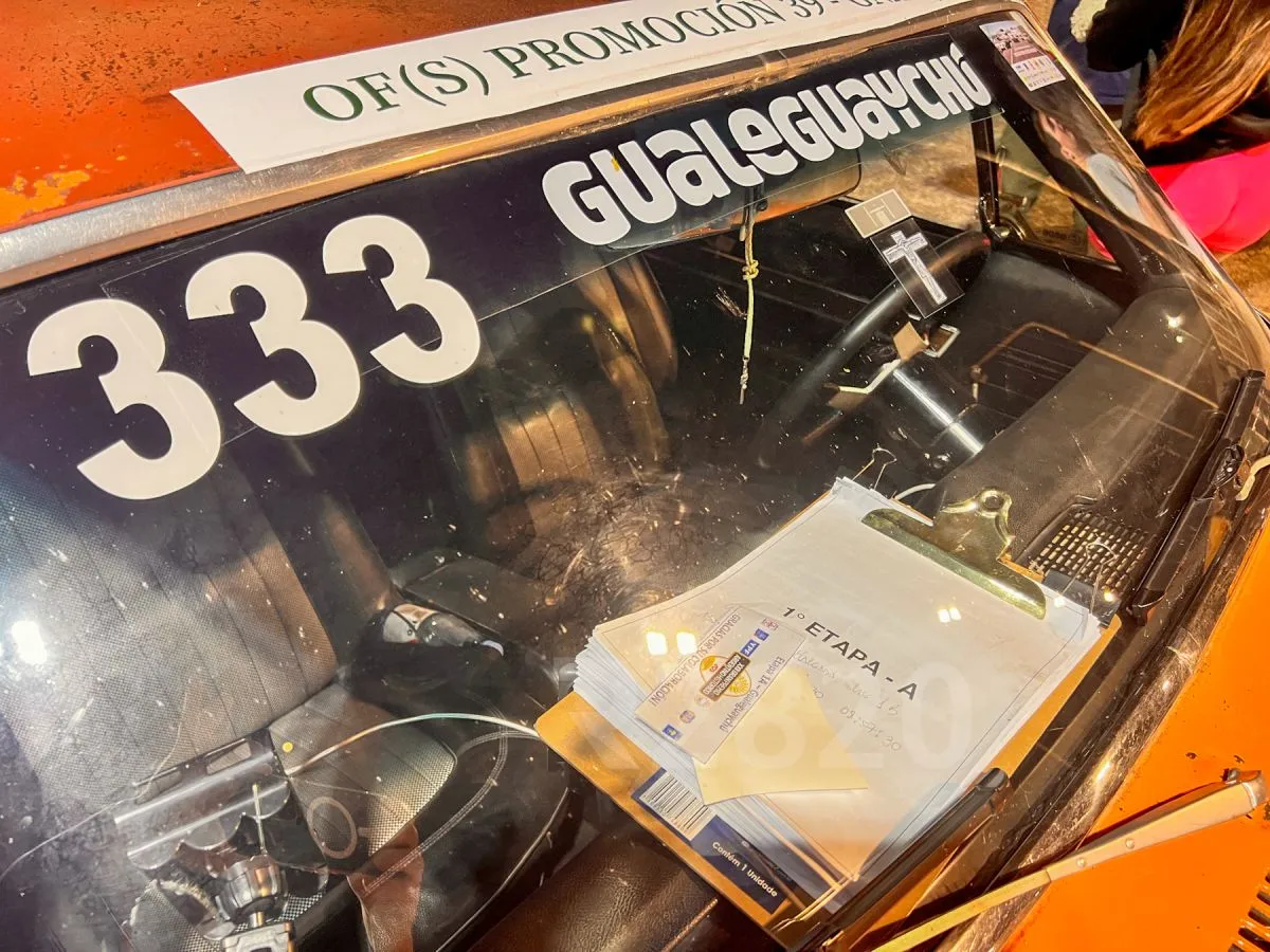 El auto, que estuvo bajo un árbol durante años, volvió a la vida para ser parte de esta aventura, mostrando su interior impecable, lleno de relojes y cronómetros, listo para enfrentarse a los desafíos de la carrera.