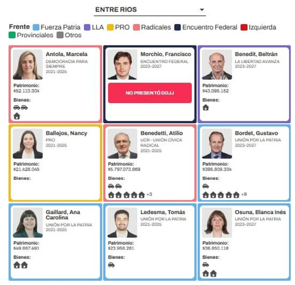 Luego de ser difundidas las declaraciones juradas de los diputados nacionales, el larroquense Atilio Benedetti figura entre los cinco legisladores con más patrimonio declarado.
