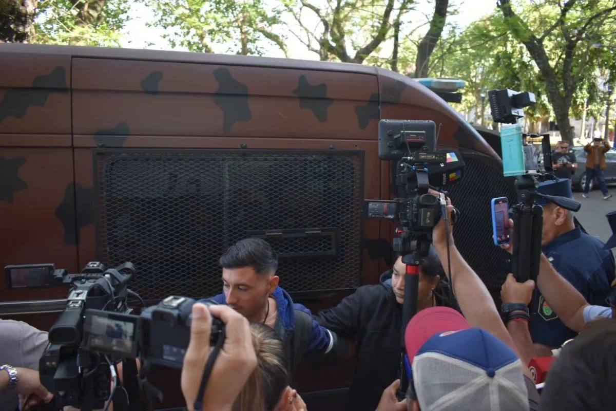 Tal como partió desde Gualeguaychú, el acusado llegó a la Capital del Citrus con casco y chaleco de seguridad, custodiado por efectivos que rápidamente descendieron para formar un cordón humano en torno al vehículo. La presencia policial se extendió a las calles adyacentes a la Jefatura, donde se dispusieron efectivos y patrulleros para impedir el acercamiento del público.