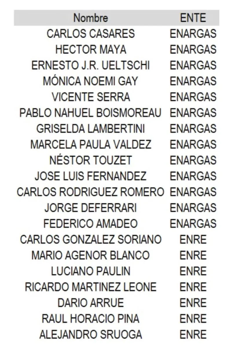 También integra la nómina el actual interventor del Enargas, Carlos Casares, exvocal de dicho ente durante el macrismo, que venía manifestando sus intenciones de quedar al frente del flamante organismo.