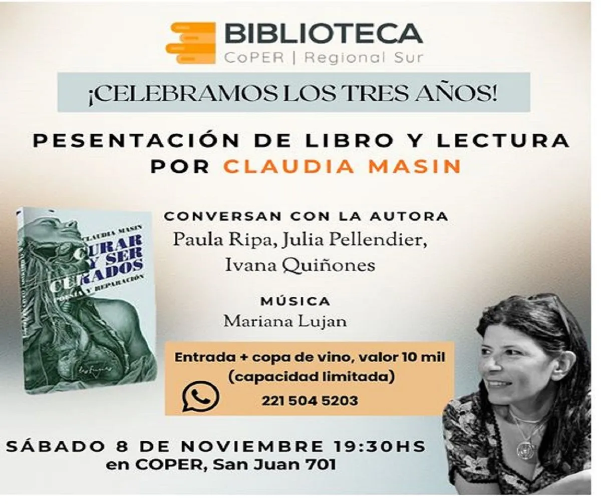 Se contará con la presencia de la psicóloga y escritora chaqueña, Claudia Masin que presentará su libro de ensayo “Curar y ser curados”. A su vez, conversará con la autora y psicóloga Paula Ripa, Julia Pellenfier (psicóloga y poeta), e Ivana Quiñones (profesora de psicología y poeta).