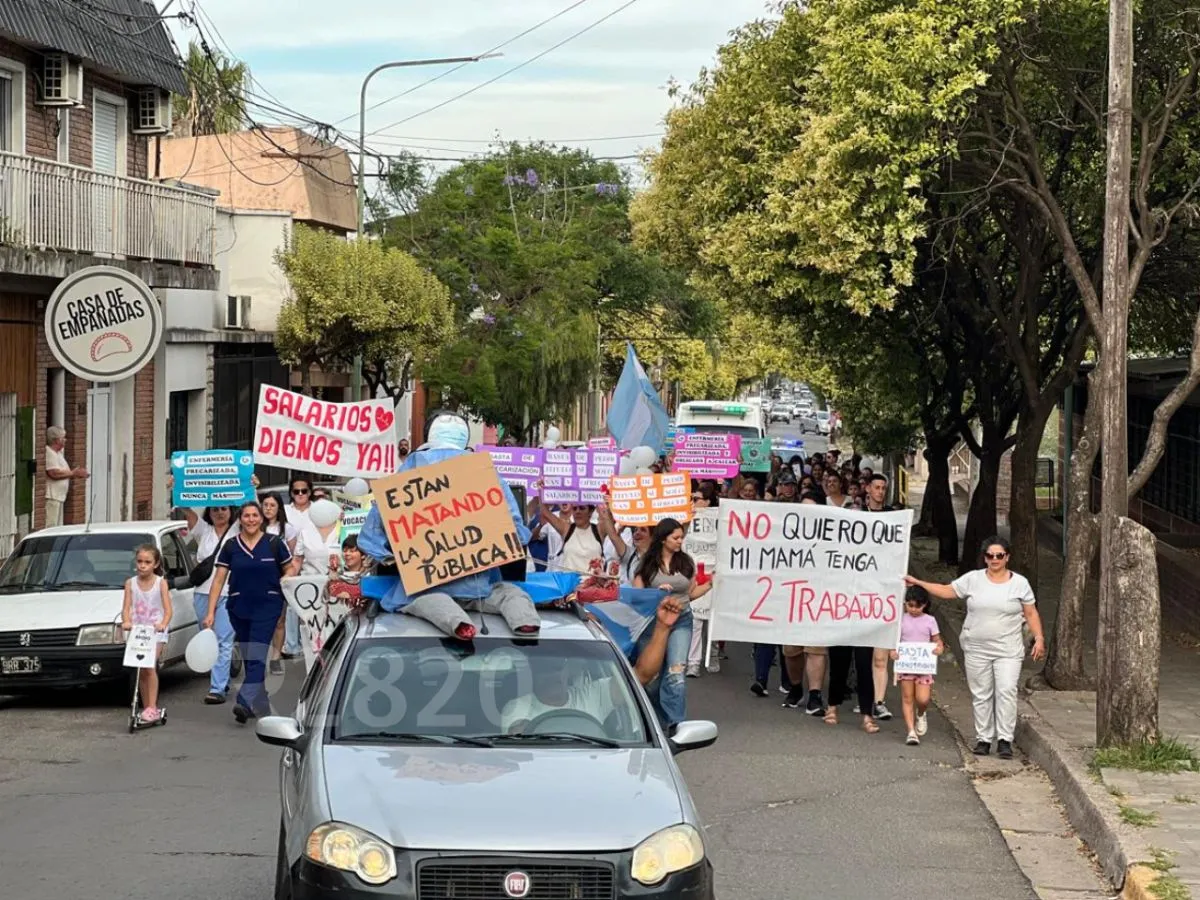“Quiero a mi mamá en casa, no quiero que tenga dos trabajos”, “Basta de precarización laboral”, “Van a pedir títulos pero no ofrecen salarios dignos”, se leía en algunos de los carteles que acompañaron a la marcha, que reunió a cientos de enfermeras y enfermeros, médicos y trabajadores de la salud pública. Dos ambulancias encabezaron el avance, mientras comerciantes y vecinos dejaban sus locales para aplaudir al personal del hospital Centenario, tal como sucedió en la primera movilización realizada el Día de la Enfermería.