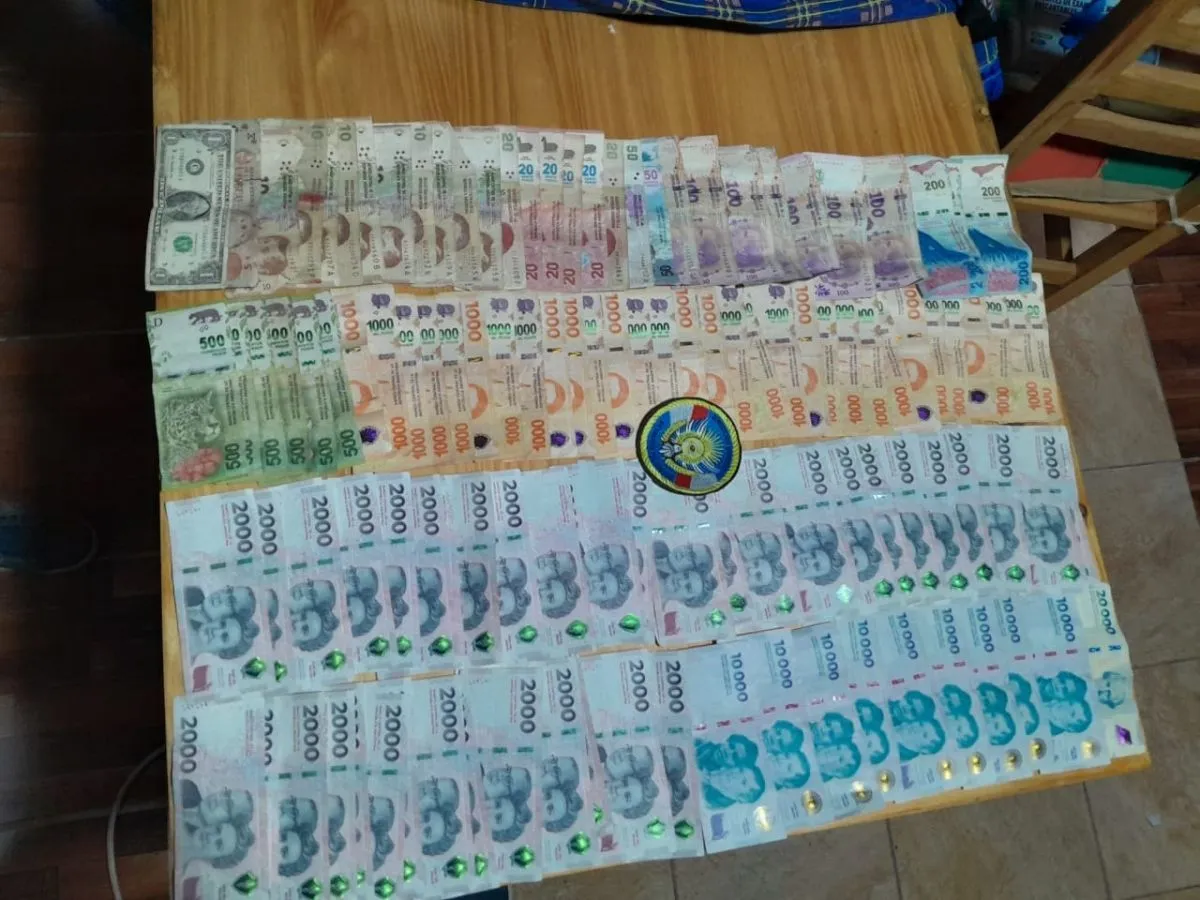 Además, se incautaron alrededor de $250.000 en efectivo, equipos de telefonía celular, un plato con restos de cocaína y recortes varios utilizados para el fraccionamiento y su posterior comercialización.