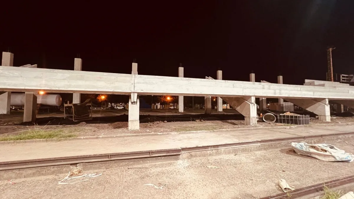 La escena en el predio donde funcionaba la vieja estación ferroviaria, junto a la Casa Rosada municipal, muestra una realidad que combina el esfuerzo de los trabajadores con obras aún inconclusas.