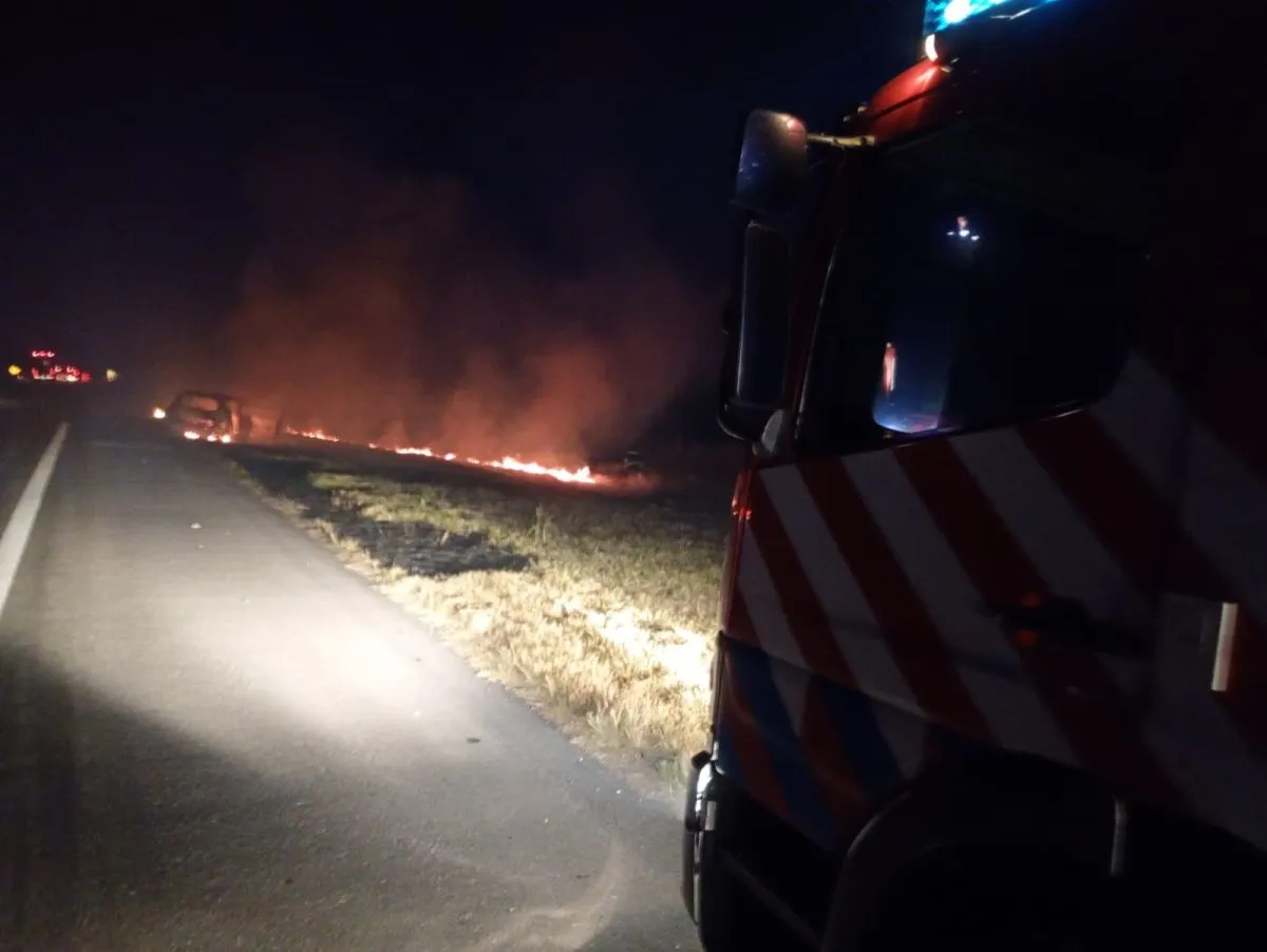 Al arribar, los efectivos constataron que el fuego había consumido completamente un automóvil marca Peugeot, con las llamas propagándose además hacia la banquina y los pastizales aledaños.