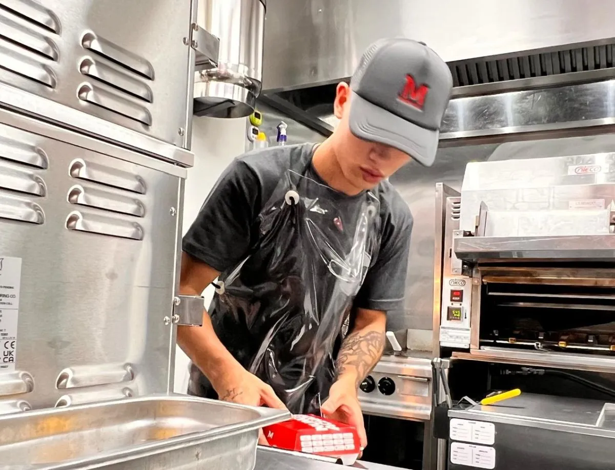 El primer cliente formal que pagó con tarjeta fue el propio intendente Mauricio Davico, quien ordenó un TR1 Doble en las pantallas del local, preparado por Lucas detrás de la línea de cocina.