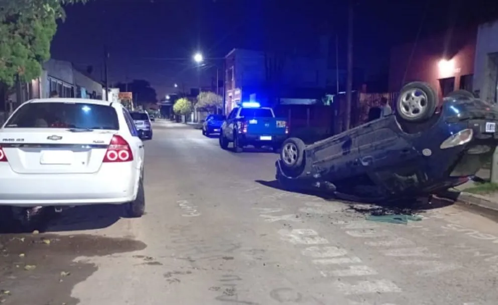Un violento accidente de tránsito ocurrido esta madrugada en Clavarino, entre Santiago Díaz y Seguí, dejó como saldo el vuelco de uno de los vehículos involucrados sobre la calzada.