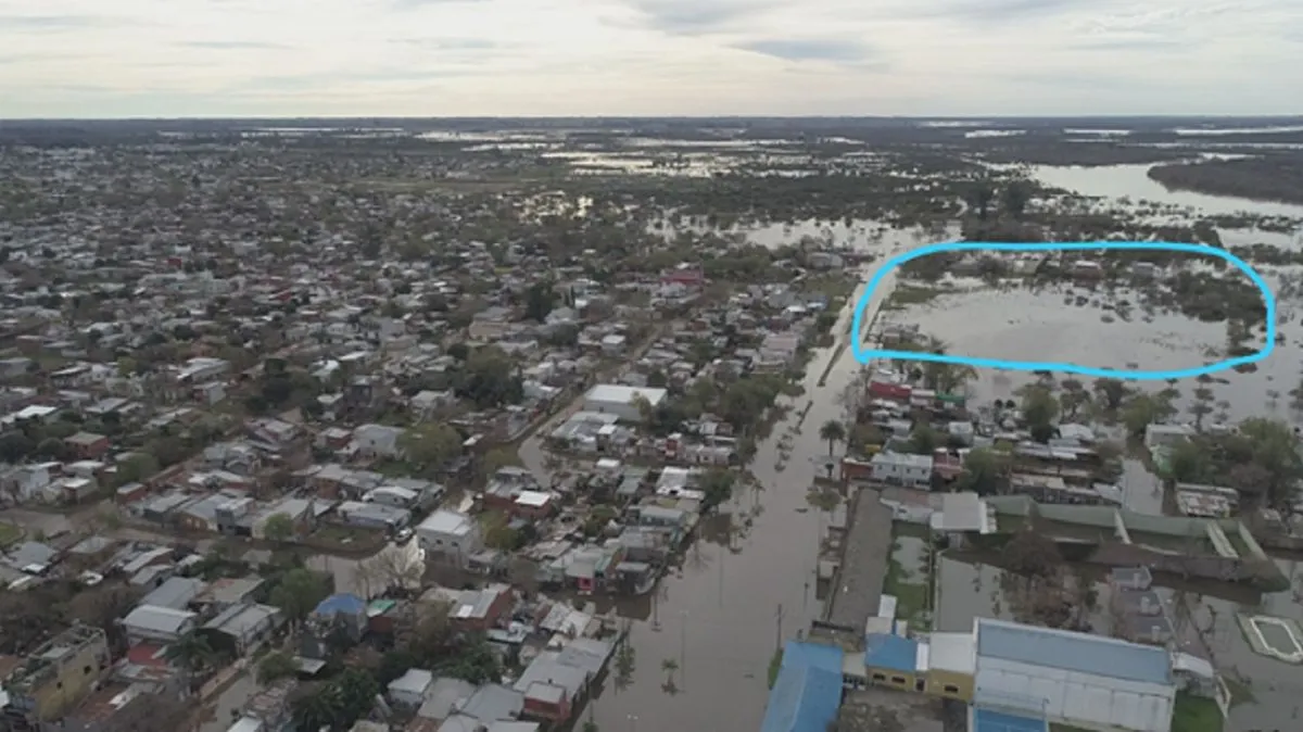 Párrafo aparte para el estudio de impacto ambiental (EsIA), publicado en el sitio web municipal, viciado de nulidad, al estar comenzada la obra antes de la aprobación del EsIA. Si bien hay un tímido reconocimiento de las inundaciones, no se hace mención a la cantidad de días que el agua permaneció en la zona de influencia del emprendimiento. En esa intención de minimizar y reconocer que la obra se desarrolla en pleno valle de inundación, solo se registra una imagen satelital, correspondiente al 2019, donde las aguas del río solo inundan una muy pequeña porción del espacio proyectado.