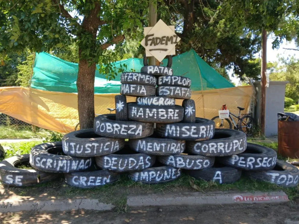 Despedidos de FADEMI montaron un árbol de Navidad con sus reclamos